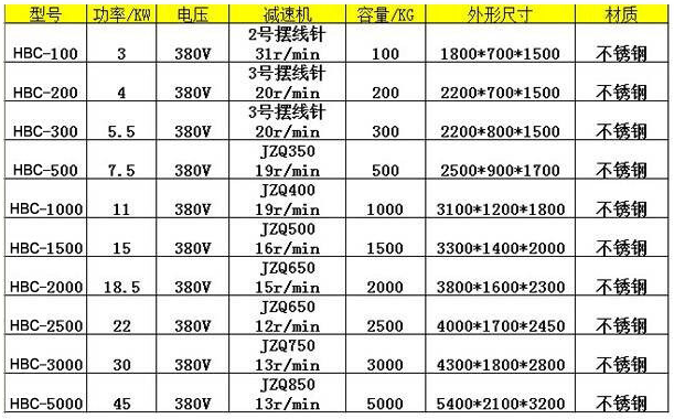 臥式干粉混合攪拌機基本參數: