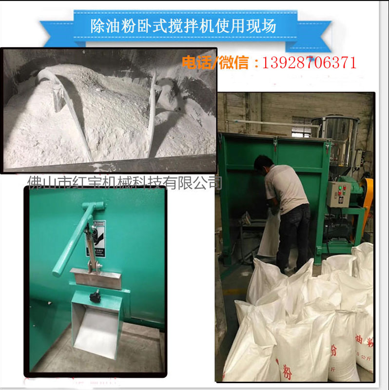 臥式干粉混合攪拌機除油粉專用密封好找佛山市紅寶機械科技有限公司專業訂制生產,可根據客戶物料及均勻度,密封要求來訂做設計,24小時服務熱線13928706371微信同號!